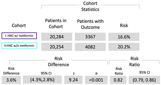 38. Alcusky, M.; Keith, S.W.; Karagiannis, T.; Rabinowitz, C.; Louis, D.Z.; Maio, V. Metformin exposure and survival in head and neck cancer: A large population-based cohort study. J. Clin. Pharm. Ther. 2019, 44, 588–594. [Google Scholar] [CrossRef]