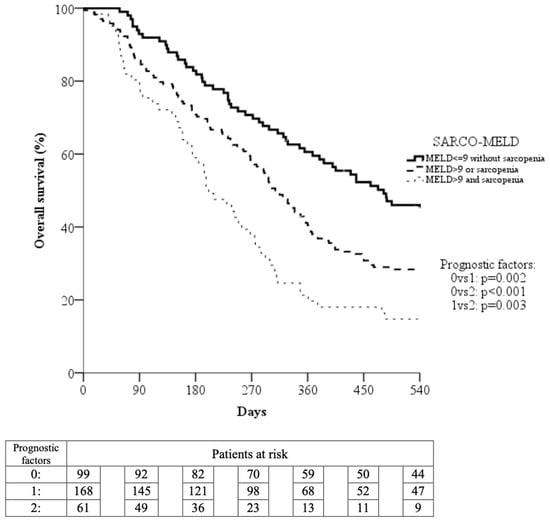 - SARCO-MELD grade 3 (high-risk group, 58 patients): characterized by the presence of both risk factors.