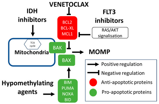 - Maiti, A.; Carter, B.Z.; Andreeff, M.; Konopleva, M.Y. SOHO State of the Art Updates and Next Questions|Beyond BCL-2 Inhibition in Acute Myeloid Leukemia: Other Approaches to Leverage the Apoptotic Pathway. Clin. Lymphoma Myeloma Leuk. 2022, 22, 652–658. [Google Scholar] [CrossRef] [PubMed]