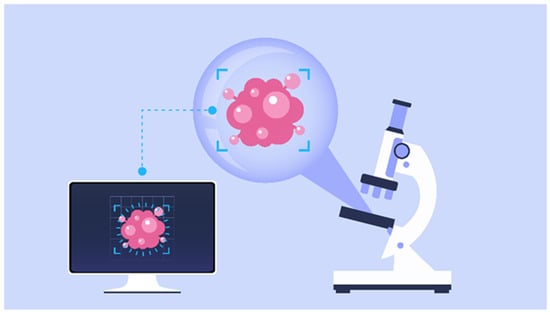 Recent years have witnessed the success of CNNs, driven by the development of DL, dramatically increased computing power of GPUs, and the emergence of large volumes of labeled datasets in visual recognition problems. As a result, DL and CNN have become increasingly popular in CV in various fields [21], including diagnostics and medicine. The most common examples include classification of skin lesions [22], histological classification of breast cancer [23], and mortality assessment by chest radiographs (lung cancer). ML is increasingly used to solve the problems of segmentation and classification of cancer cells in various locations in the body; new systems are being developed and improved that can detect the presence of pathological cells and classify them using a loaded image of scanned glass with histology [24,25,26,27,28].