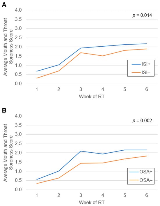 Iovoli AJ, Smith K, Yu H, Kluczynski MA, Jungquist CR, Ray AD, Farrugia MK, Gu F, Singh AK. Association of Insomnia and Obstructive Sleep Apnea with Worse Oral Mucositis and Quality of Life in Head and Neck Cancer Patients Undergoing Radiation Therapy. Cancers. 2024; 16(7):1335. https://doi.org/10.3390/cancers16071335