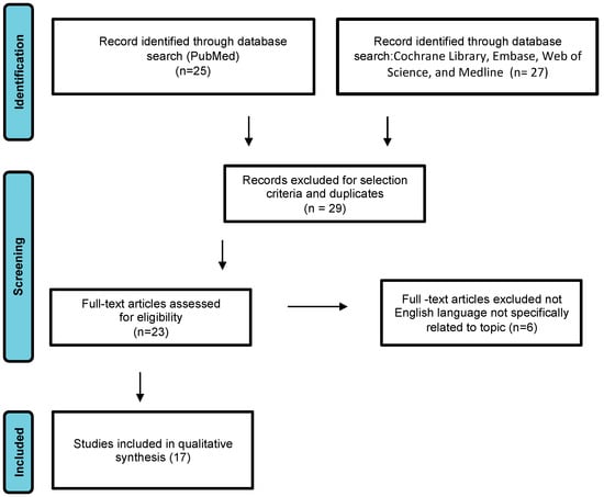 Study flow diagram: PRISMA flow diagram of identification, screening, and inclusion of articles. Systematic literature reviews were selected with standard methods to be briefly presented in the article.