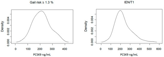 The overall distribution of plasma PCSK9 levels according to risk groups is depicted in Figure 1.