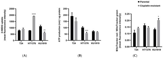 APA StyleAfonso, J., Barbosa-Matos, C., Silvestre, R., Pereira-Vieira, J., Gonçalves, S. M., Mendes-Alves, C., Parpot, P., Pinto, J., Carapito, Â., Guedes de Pinho, P., Santos, L., Longatto-Filho, A., & Baltazar, F. (2024). Cisplatin-Resistant Urothelial Bladder Cancer Cells Undergo Metabolic Reprogramming beyond the Warburg Effect. Cancers, 16(7), 1418. https://doi.org/10.3390/cancers16071418