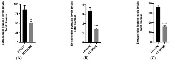 2.13. Chromatographic Analysis of Extracellular Glucose, Pyruvate and Lactate