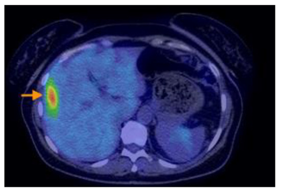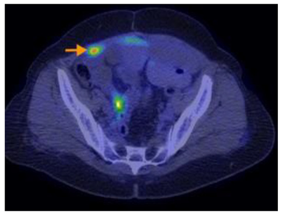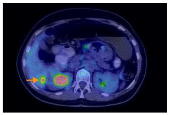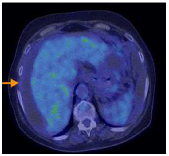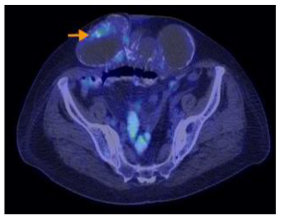 Research designed by Aso retrospectively analyzed individuals who were sequentially recruited and diagnosed with PMP with an appendiceal origin. They had preoperative 18F-FDG PET/CT. The SUVmax was determined as the greatest SUVmax value in the abdomen, excluding the main site. SUVmax was compared with the pathological grade (low or high grade) of PMP tumors based on the World Health Organisation categorization. It was then analyzed in terms of the predicted cutoff point, sensitivity, specificity, and receiver operating characteristic. The research indicated that the maximum standardized uptake value (SUVmax) from preoperative 18F-FDG PET/CT scans correlated with the pathological grade in individuals diagnosed with PMP. Aspects on PET-CT scans of PMP can be found in Figure 12, Figure 13, Figure 14, Figure 15 and Figure 16.