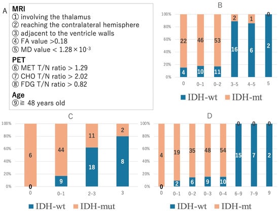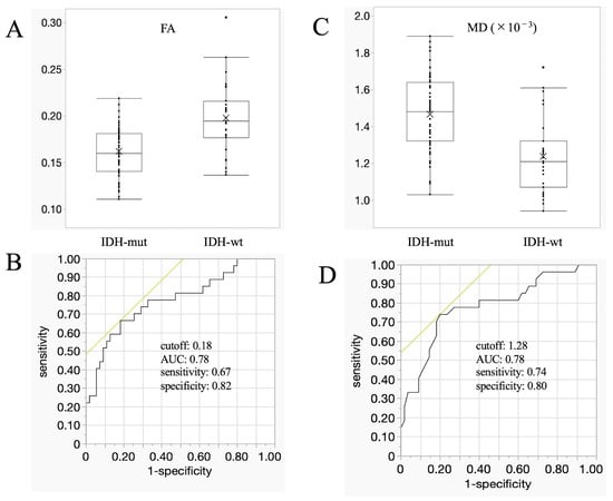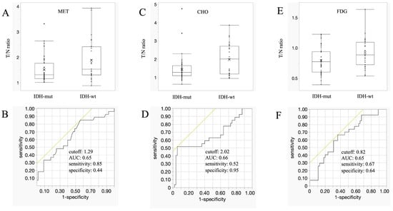APA StyleYasuda, S., Yano, H., Ikegame, Y., Ikuta, S., Maruyama, T., Kumagai, M., Muragaki, Y., Iwama, T., Shinoda, J., & Izumo, T. (2024). Predicting Isocitrate Dehydrogenase Status in Non-Contrast-Enhanced Adult-Type Astrocytic Tumors Using Diffusion Tensor Imaging and 11C-Methionine, 11C-Choline, and 18F-Fluorodeoxyglucose PET. Cancers, 16(8), 1543. https://doi.org/10.3390/cancers16081543