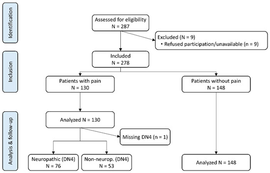 3.1. Patient Disposition, Pain Prevalence, Cancer, and Pain Characteristics