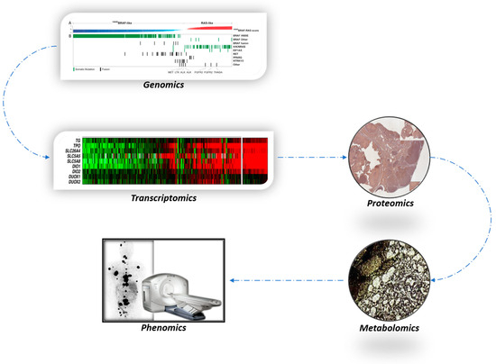 Genomics is predictive of transcriptomics, and transcriptomics is predictive of proteomics. Both genomics and transcriptomics can be conveniently determined by next-generation sequencing of fine needle aspiration biopsy material. Proteomics, by immunohistochemistry, demonstrates tissue expression and a functional orientation of the determinants of thyroid differentiation. RAI metabolomics implies the distribution pattern of RAI in normal and malignant neoplastic tissue. The suppressed RAI uptake can be demonstrated by autoradiography. This technique is currently not in practical clinical use. The in-vivo ultimate theranostic power of RAI is expressed as phenomics and most decisively determined by RAI imaging and dosimetry.