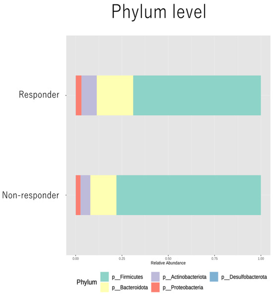 We examined the gut microbiome profile of the responder and non-responder groups at the phylum level, as shown in Figure 2.