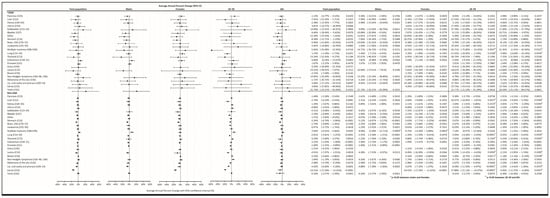 Temporary trends were also analyzed, and it was found that in the Non-Diab group, between 2015–2018, overall AAPC decreased by −1.86% (−2.29–−1.44%, p < 0.0001) annually, as opposed to cancer incidence in the T2DM group, which was practically unchanged (AAPC, 0.27 [−2.32–+2.60, p = 0.9291]) (Figure 4B). A similar AAPC difference was found between the T2DM and Non-Diab groups in males and females (Figure 4B).