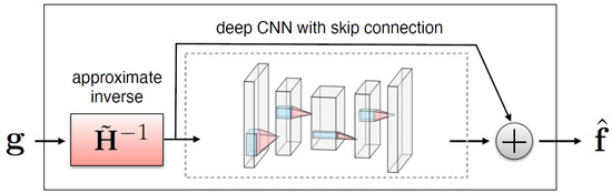 A simple method for embedding the forward operator into the network architecture is to apply an approximate inverse operator (a matrix such that for every image of interest) to first map measurements to image domain and then train a neural network to remove degradations (noise and artifacts) from the resulting images [27], as illustrated in Figure 3.