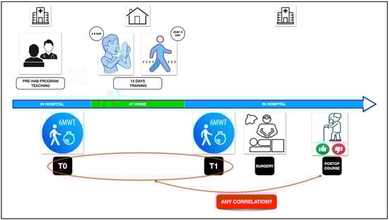 Another limit of this analysis is represented by the need to verify result generalizability in different clinical settings. In fact, we performed the 6MWT in the context of a pre-habilitation program that needs the cooperation of physiatrists, which both explains the training program and measures its effectiveness through the 6MWT for T0 and T1. Furthermore, the preoperative, intraoperative, and postoperative phases of the clinical course in our unit are standardized and organized following EPC protocols, which could have influence in the obtained outcomes.