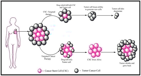 Schematic representing a chemotherapeutic drug approach to targeting cancer stem cells (CSCs) as a potential treatment for cancer. Salinomycin has shown specific preclinical activity against CSCs. Reproduced with permission from https://www.mdpi.com/2673-8937/3/2/16 [91]. Accessed on 20 December 2024.