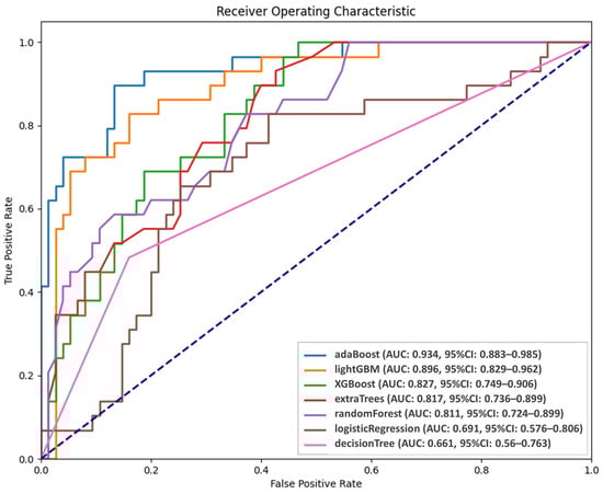 To explore the relationship between radiomic features, differential radiomic features, and post-treatment tumor status, we employed seven machine learning methods, which were AdaBoost, LightGBM, XGBoost, extra trees, random forest, logistic regression, and decision trees [35]. The objective was to develop a prediction model capable of accurately forecasting persistent tumor status in patients with NPC on the basis of these radiomic features.