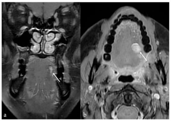 - Ozturk, M.; Mavili, E.; Erdogan, N.; Cagli, S.; Guney, E. Tongue abscesses: MR imaging findings. AJNR Am. J. Neuroradiol. 2006, 27, 1300–1303. [Google Scholar] [PubMed] [PubMed Central]