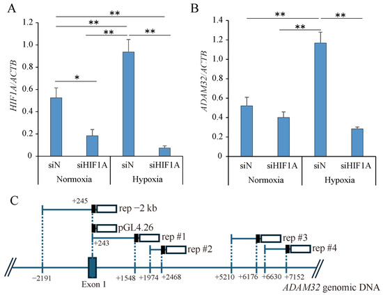 3.2. Increased ADAM32 Expression Under Hypoxic Conditions Is Regulated by HIF-1α but Not Promoter Regulation in HBL