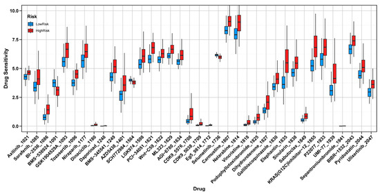 Drug Sensitivity Analysis in High-Risk and Low-Risk Groups. Comparison of IC50 values between high-risk and low-risk groups, showing distinct drug sensitivities.