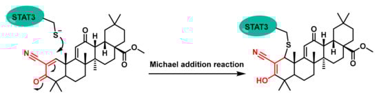 One notable compound is CDDO-Methyl Ester (CDDO-Me) (Figure 6) [54]. This compound forms adducts with Cys259, leading to the disruption of STAT3 dimerization and subsequent inhibition of its activity [55].