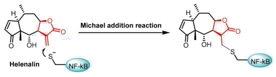 - Drogosz, J.; Janecka, A. Helenalin—A Sesquiterpene Lactone with Multidirectional Activity. Curr. Drug Targets 2019, 20, 444–452. [Google Scholar] [CrossRef]
