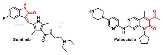 In order to carry out the molecular docking study, we used the AutoDockFR algorithm, which incorporates covalent docking methods. We have selected two well-known molecules that are widely used in conventional chemotherapy, although their selectivity is higher than that of TKIs and CDKIs, namely Sunitinib and Palbociclib.