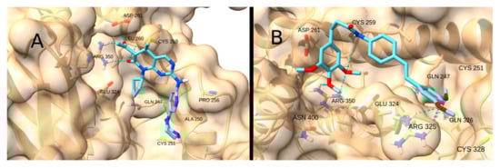 The Cys259 of STAT3 are pivotal for its function, involved in the formation of the dimer and DNA binding [50]. When this residue forms disulphide bonds, they can influence the dimerization process, affecting the transcriptional activity of STAT3, as dimerization is required for DNA binding [51]. The alkylation of Cys259 is a significant area of research due to its implications in regulating STAT3 activity.