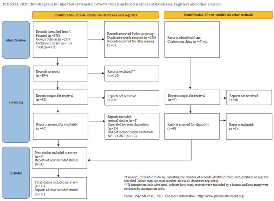 - Studies that did not report quantitative data for NF-1 and GISTs.