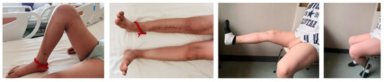 The alive children can walk stably without pain, go back to school, return to their entertainment activities, and even engage in running or biking. The range of flexion of the knee after rehabilitation was between 90° and 125°, with an average of 103.6° ± 12.5° (Figure 4). The average MSTS score of the alive patients was 27.4 (SD, 1.5; range, 25–29). No knee instability was found during the last follow-up.