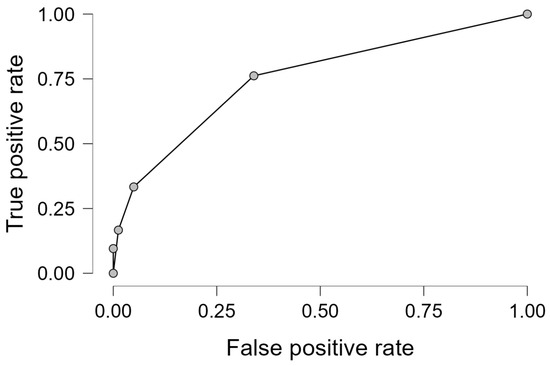 The logistic model showed acceptable discrimination (AUC, 0.778) and good calibration on the Hosmer–Lemeshow test (p > 0.05), with the ROC curve illustrated in Figure 1.