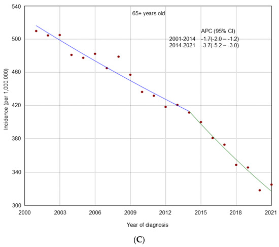 - Joinpoint Regression Program, Version 4.5.0.1—June 2017; Statistical Methodology and Applications Branch, Surveillance Research Program, National Cancer Institute: Bethesda, MD, USA, 2017.