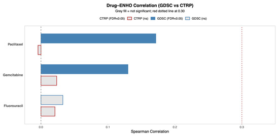 A comprehensive overview of the correlation between ENHO expression and drug sensitivity using both the GDSC and CTRP databases. Only drugs relevant to PAAD were included.