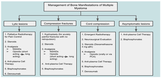 - Davies, M.P.; Fingas, S.; Chantry, A. Mechanisms and treatment of bone pain in multiple myeloma. Curr. Opin. Support. Palliat. Care 2019, 13, 408–416. [Google Scholar] [CrossRef]