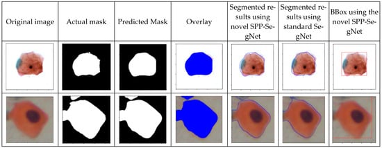 The following are the experimental setups implemented in this study. We used a novel SPP-SegNet DL architecture to separate entire cells from the background and SE-DenseNet201 to classify cervical cells. To evaluate the proposed model, we used the Pomeranian and SIPaKMeD datasets, which were divided into training, validation, and testing sets. Experiments were conducted using both the standard SegNet and the novel SPP-SegNet models for segmentation. The results of the segmentation for both the standard SegNet and the proposed SPP-SegNet models are presented in Table 2.