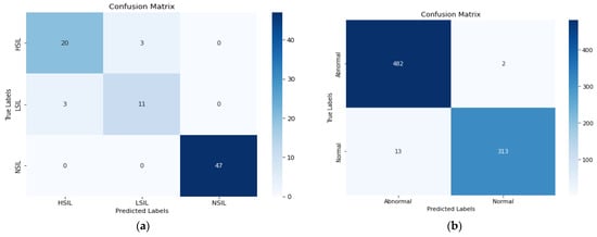 Confusion matrix: (a) Pomeranian and (b) SIPaKMeD.