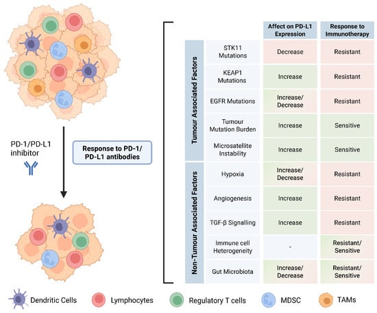 This review summarizes the current understanding of tumour-associated and non-tumour-associated factors, in addition to PD-L1 expression, that may influence response to PD-1/PD-L1 inhibitors. Here, we focus on the factors that affect the activation and suppression of the immune response and determine how these factors predict response to immunotherapy.