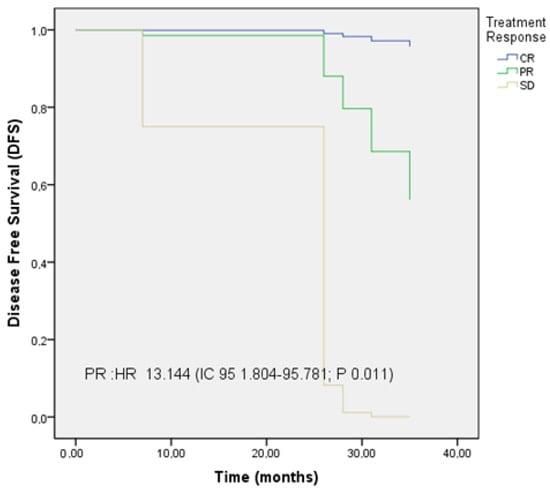 Kaplan–Meier curves of disease-free survival (DFS) according to treatment response.