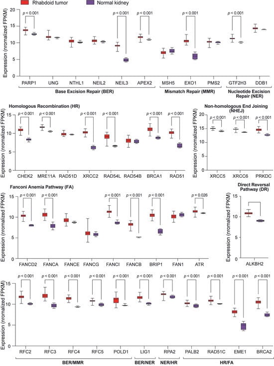 3.6. Upregulation of DNA Repair Gene Expression in Rhabdoid Tumors