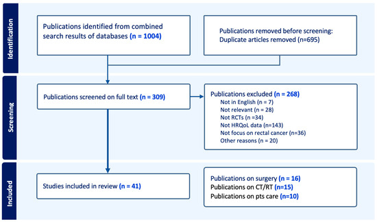 APA StyleNegro, S., Bergamo, F., Dell’Atti, L., Prete, A. A., Galuppo, S., Scarpa, M., Bao, Q. R., Ferrari, S., Lonardi, S., Spolverato, G., & Urso, E. D. L. (2025). Quality of Life in Rectal Cancer Treatments: An Updated Systematic Review of Randomized Controlled Trials (2013–2023). Cancers, 17(14), 2310. https://doi.org/10.3390/cancers17142310
