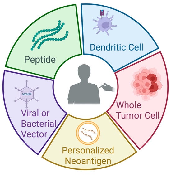 The concept of vaccination against cancer dates to the nineteenth century, with anecdotal evidence of patients experiencing spontaneous tumor regression following acute bacterial infections. Later, Dr. William Coley treated cancer patients with extracts of heat-inactivated Streptococcus pyogenes and Serratia marcescens—a formulation known as “Coley’s toxin”—representing one of the earliest attempts at cancer immunotherapy. However, its efficacy was both debatable and unable to be reproduced at the time, resulting in harsh criticism and a lack of acceptance [44,45,46]. While Coley was ultimately vindicated when his studies were reproduced nearly a century later [47], modern cancer vaccines are typically engineered to enhance pre-existing tumor-specific T cell responses and to broaden the T cell repertoire by inducing the de novo activation of naïve or antigen-experienced T cells in an antigen-specific manner [48].