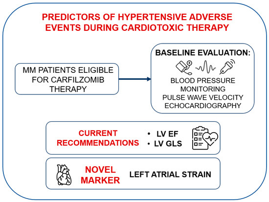 This study aims to evaluate the role of LAS, a parameter of growing interest due to recent evidence of its sensitivity in detecting early cardiac dysfunction, as a predictive marker for Carfilzomib-related hypertensive CVAEs in MM patients, with the objective of improving baseline cardiovascular risk stratification in this population (Figure 1).