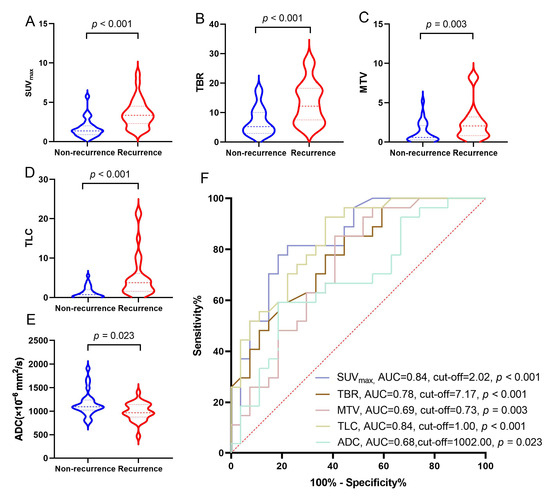 - Vicente, A.M.G.; Pardo, F.J.P.; Amo-Salas, M.; Martín, M.V.; Menéndez, C.L.; Castrejón, Á.M.S.; Pérez-Beteta, J. Prognostic Potential of Postoperative 18F-Fluorocholine PET/CT in Patients with High-Grade Glioma. Clinical Validation of FuMeGA Postoperative PET Criteria. Clin. Nucl. Med. 2022, 47, 480–487. [Google Scholar] [CrossRef] [PubMed]