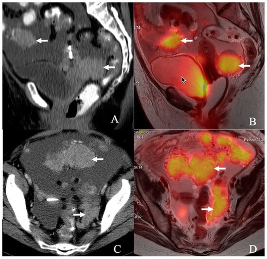 - Hynninen, J.; Kemppainen, J.; Lavonius, M.; Virtanen, J.; Matomäki, J.; Oksa, S.; Carpén, O.; Grénman, S.; Seppänen, M.; Auranen, A. A prospective comparison of integrated FDG-PET/contrast-enhanced CT and contrast-enhanced CT for pretreatment imaging of advanced epithelial ovarian cancer. Gynecol. Oncol. 2013, 131, 389–394. [Google Scholar]