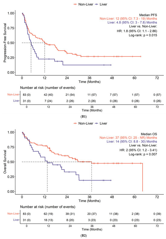 - Tumeh, P.C.; Hellmann, M.D.; Hamid, O.; Tsai, K.K.; Loo, K.L.; Gubens, M.A.; Rosenblum, M.; Harview, C.L.; Taube, J.M.; Handley, N.; et al. Liver Metastasis and Treatment Outcome with Anti-PD-1 Monoclonal Antibody in Patients with Melanoma and NSCLC. Cancer Immunol. Res. 2017, 5, 417–424. [Google Scholar] [CrossRef]