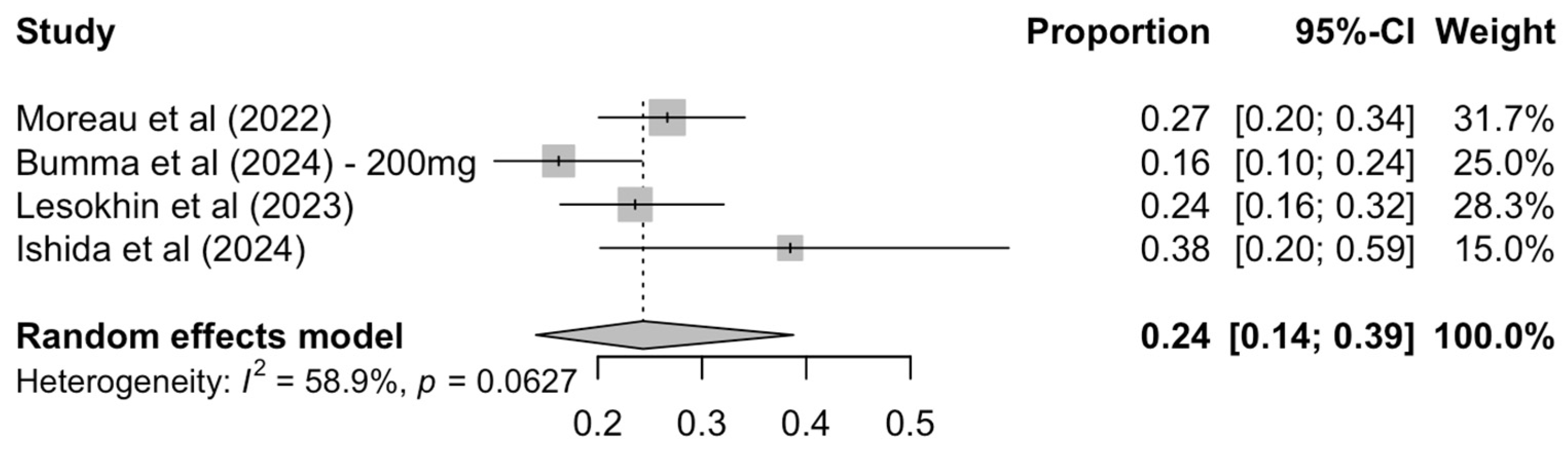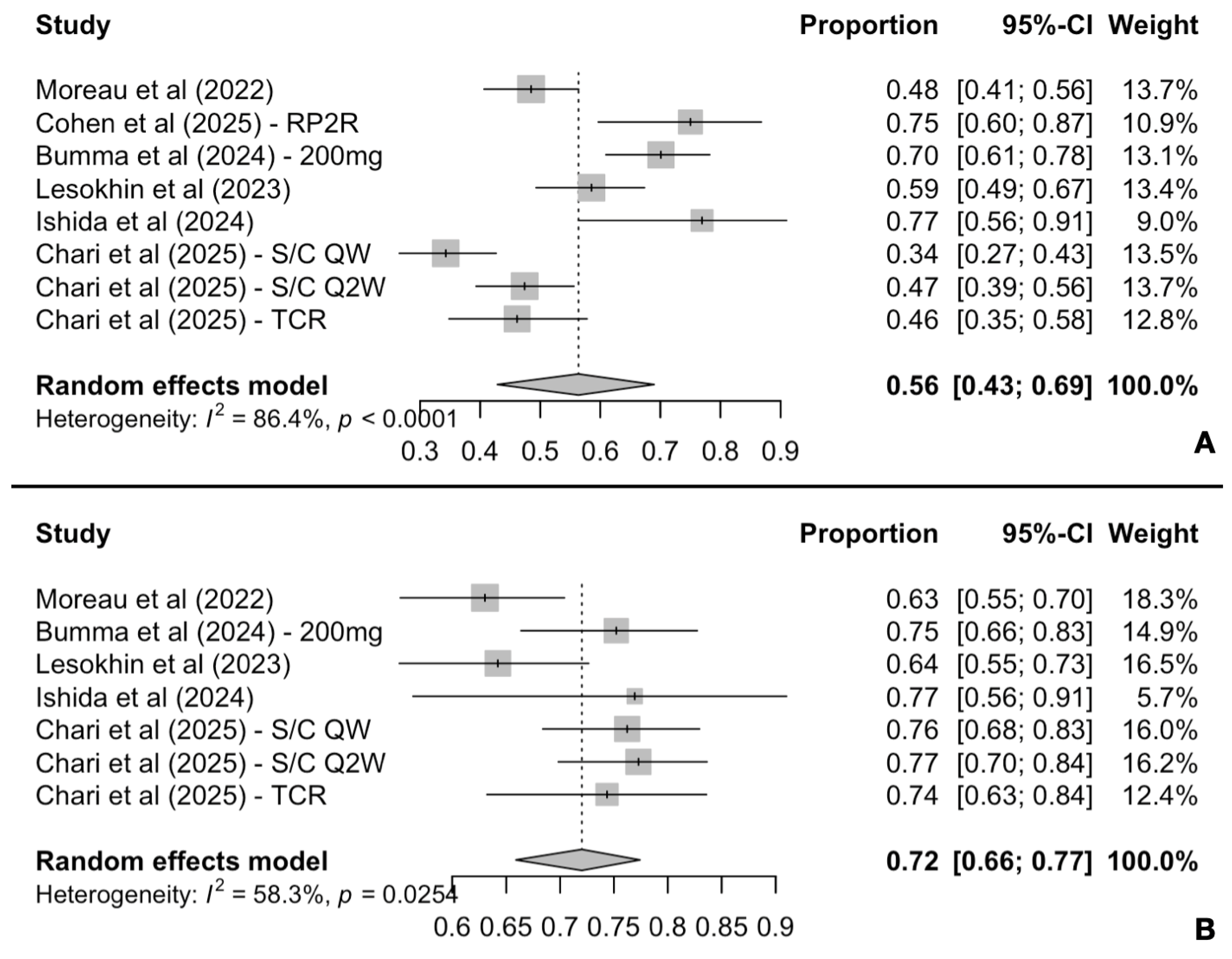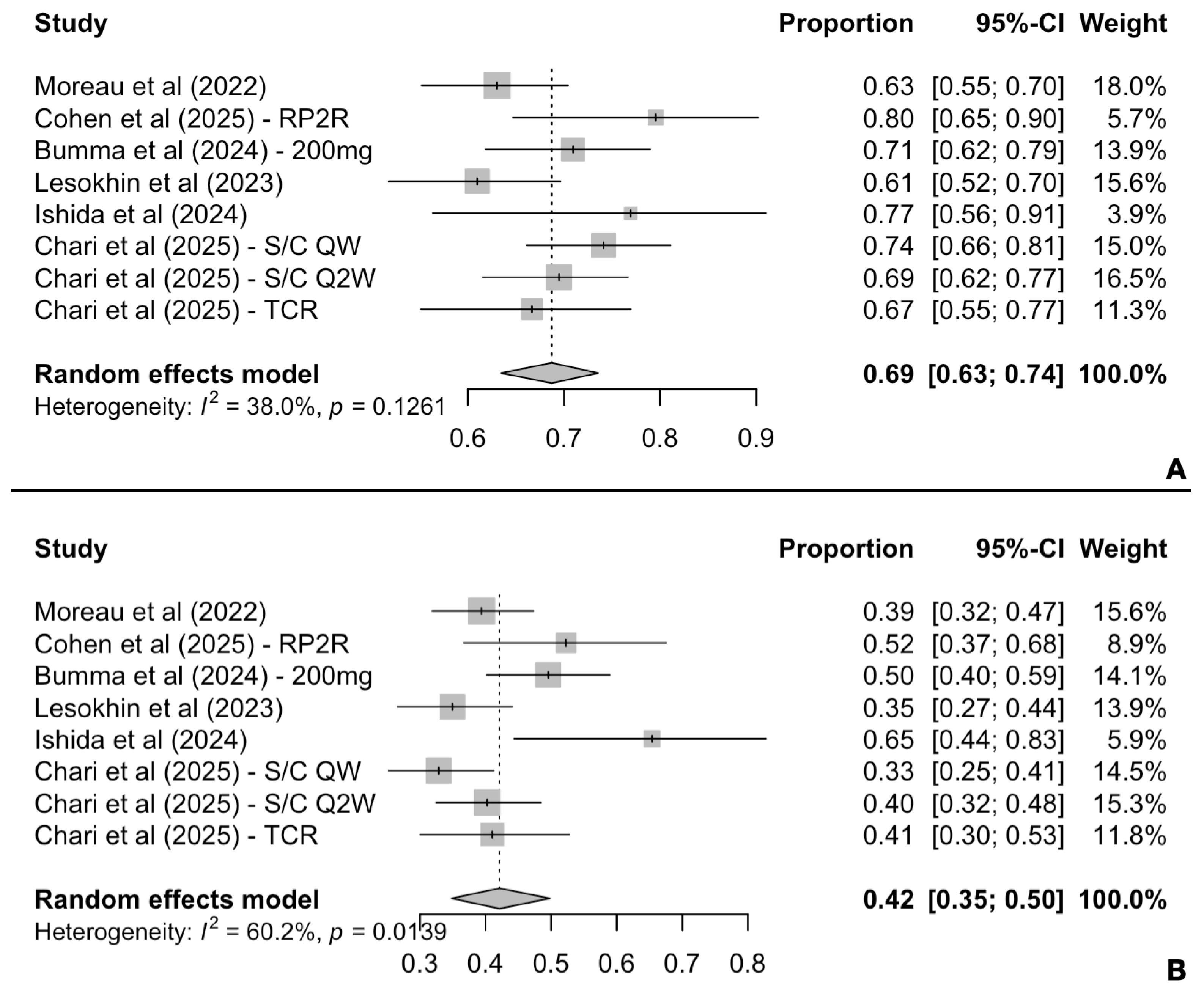 APA StyleBakogeorgou, S., Filippatos, C., Malandrakis, P., Tentolouris, A., Terpos, E., Gavriatopoulou, M., & Ntanasis-Stathopoulos, I. (2025). Safety and Efficacy of Bispecific Antibody Treatment in Relapsed/Refractory Multiple Myeloma: A Systematic Review and Meta-Analysis of Proportions from Clinical Trials. Cancers, 17(17), 2727. https://doi.org/10.3390/cancers17172727
