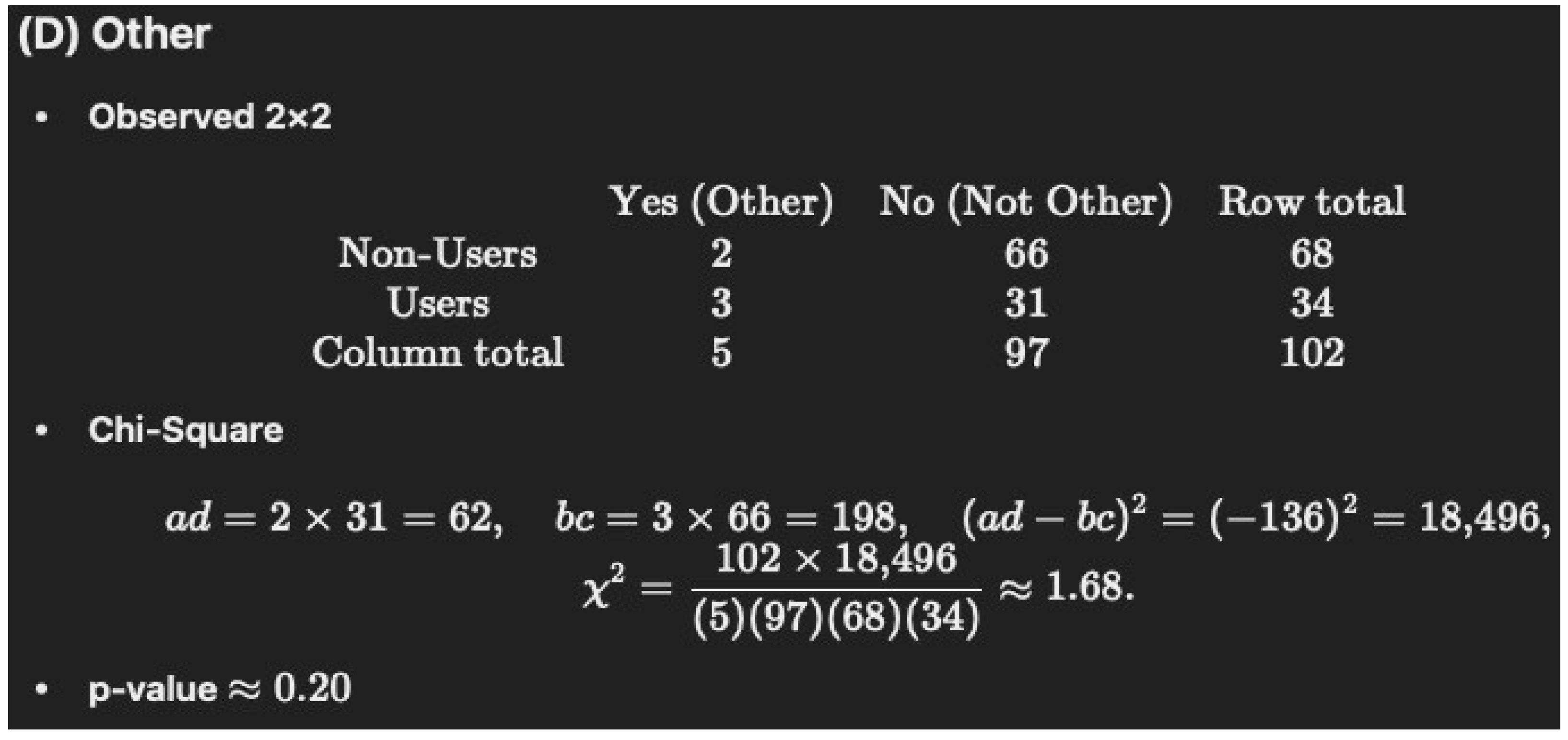 Non-Users (N = 68): 4/68 = 5.88% (rounded to 5.8%)