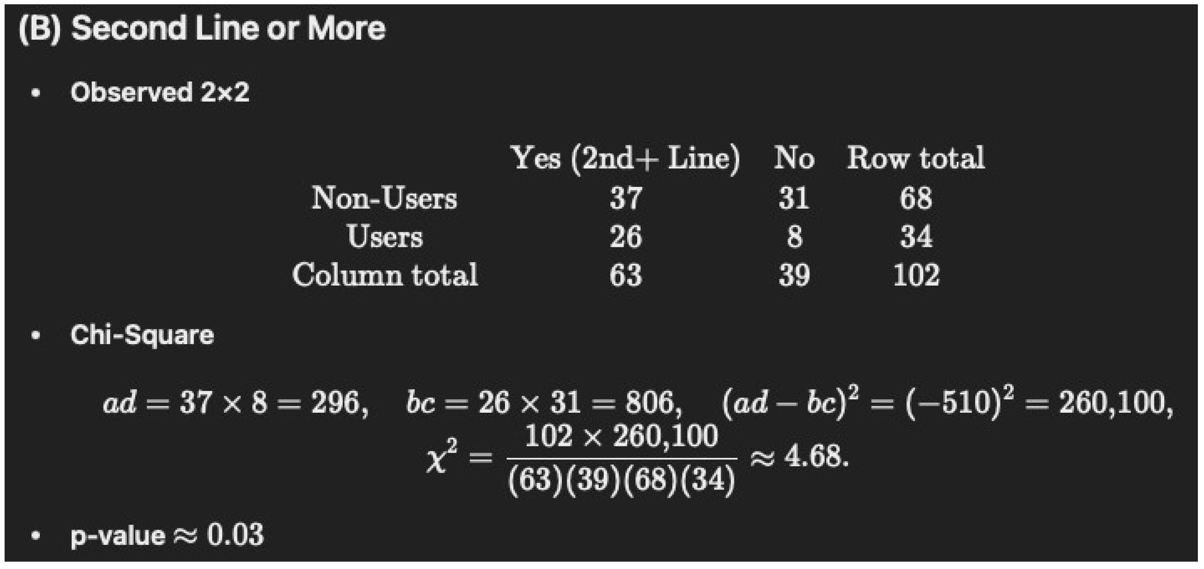 - We gave the ChatGPT 4o model the paper and instructed it to go to Table 1 and perform a chi-square test for the gender- and number-matched samples. The results were good.