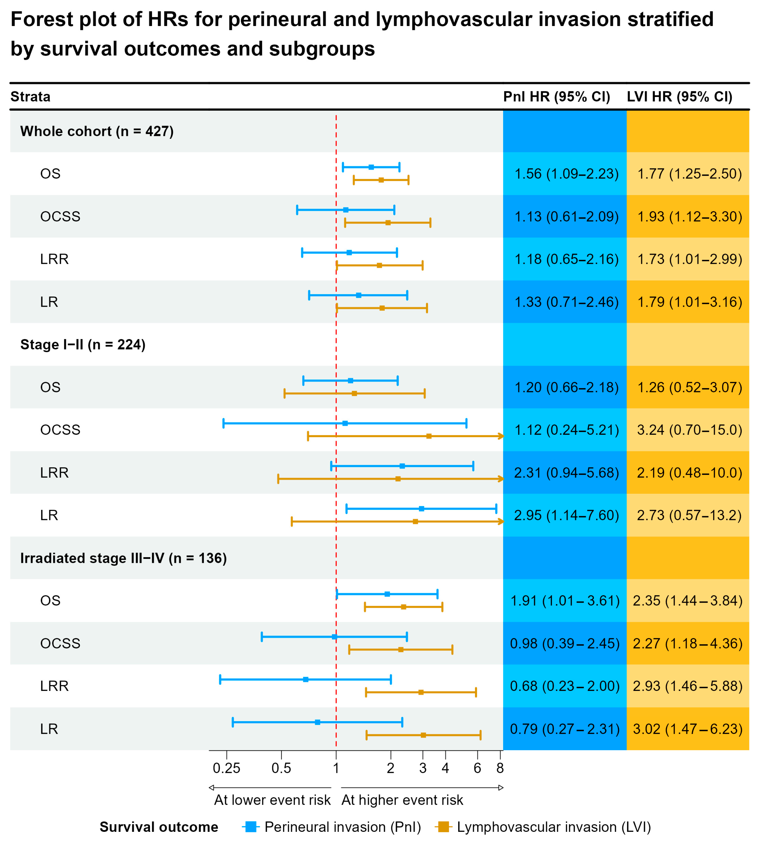 | Perineural Invasion (PnI) | Lymphovascular Invasion (LVI) | |||||