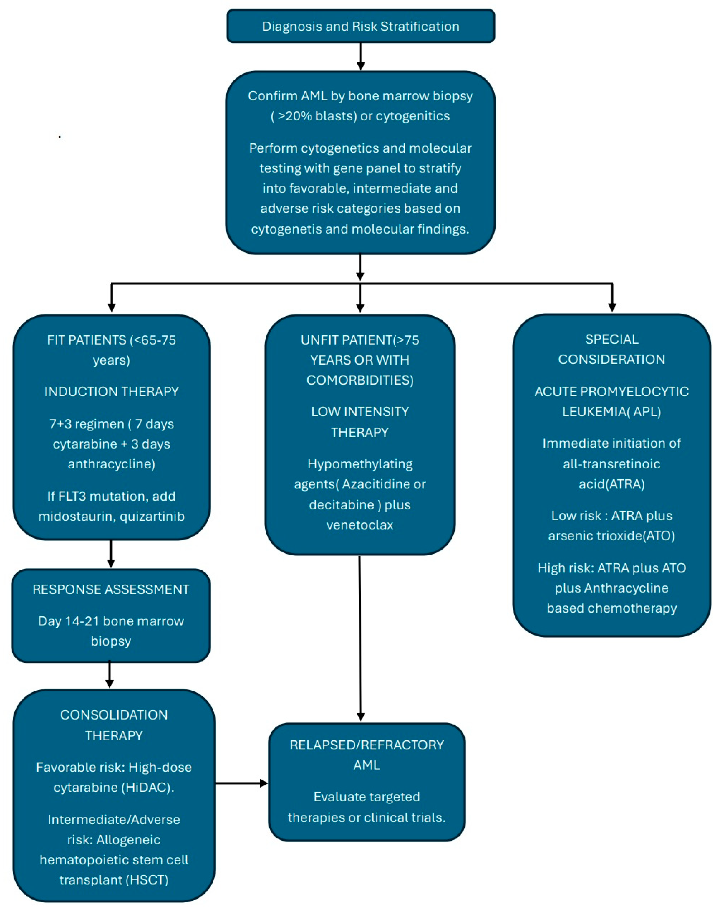 APA StyleYadav, S. K., Joshi, U., Hussein, G., Warsame, M., Liu, B., Shrestha, A., Krastev, P., Korsapati, H. R., & Singh, A. (2025). Evolving Paradigms in Acute Myeloid Leukemia: Personalized Approaches to Therapy Across Age and Risk Groups. Cancers, 17(17), 2824. https://doi.org/10.3390/cancers17172824