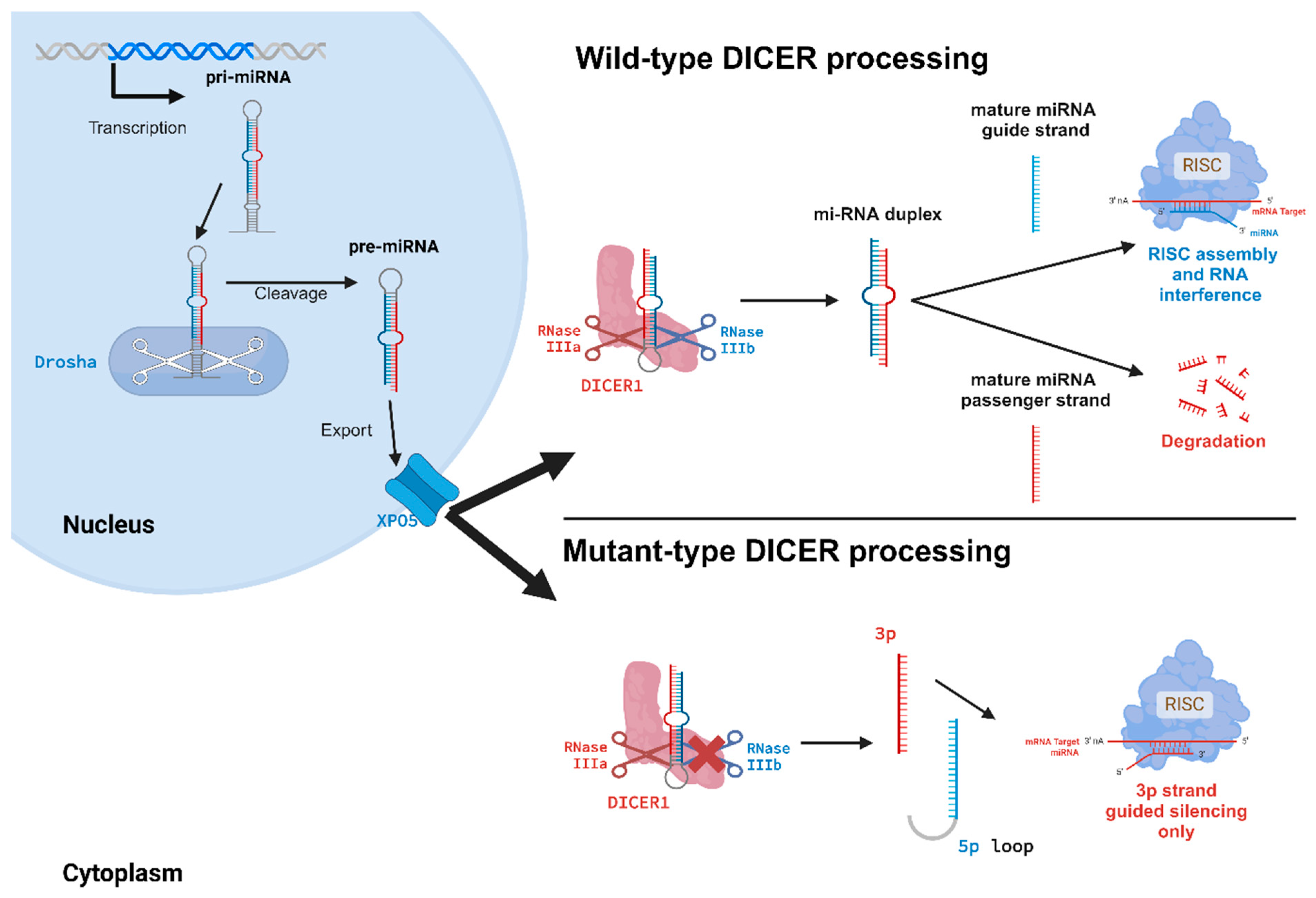 - Foulkes, W.D.; Priest, J.R.; Duchaine, T.F. DICER1: Mutations, microRNAs and Mechanisms. Nat. Rev. Cancer 2014, 14, 662–672. [Google Scholar] [CrossRef]