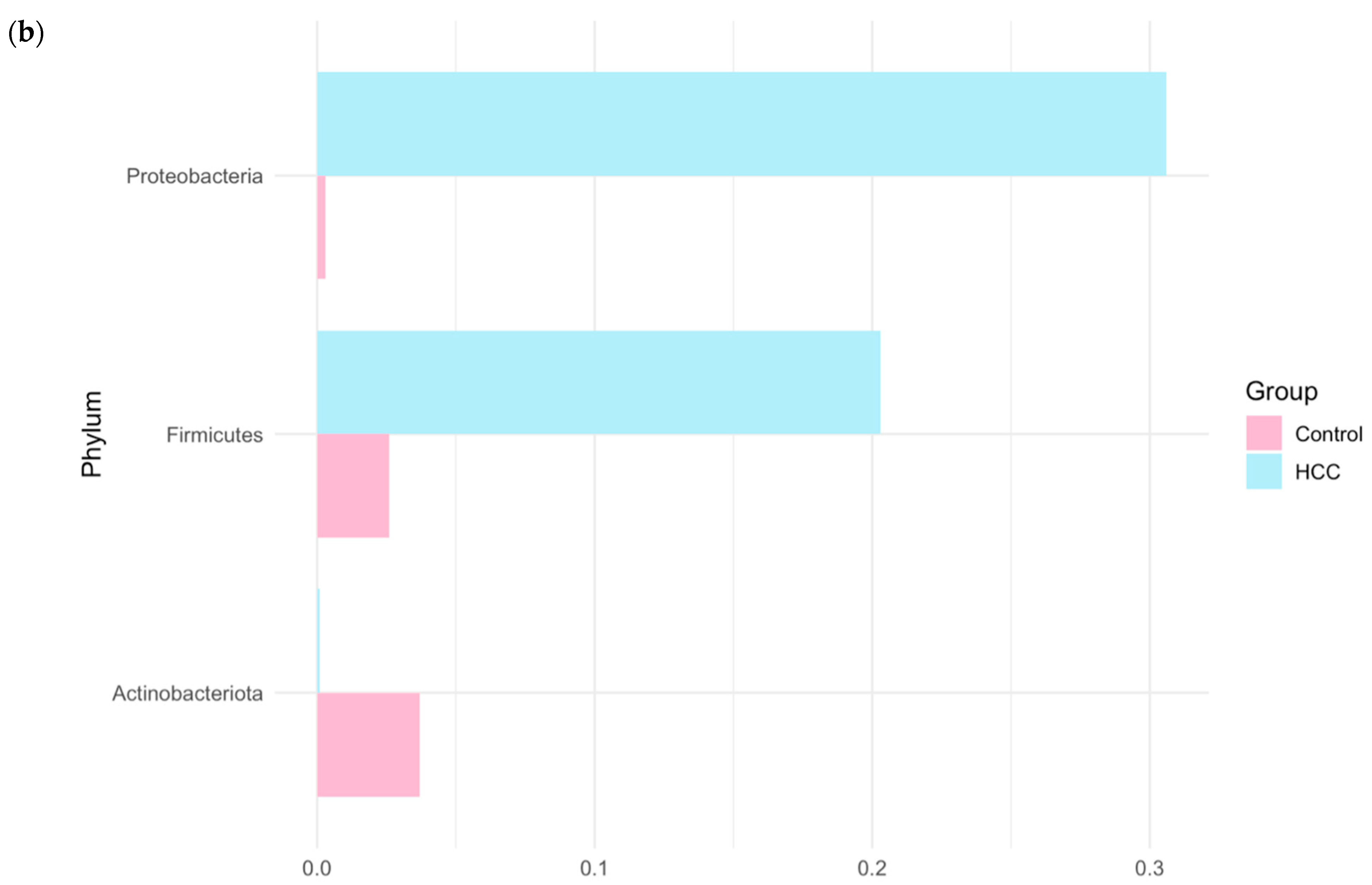 3.3. Gut Microbiota Shifts in Advanced HCC